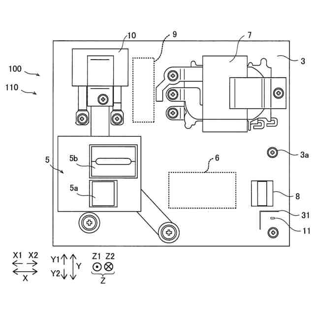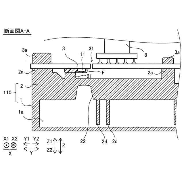 【解決手段】冷却流路1aを含む基台部110と、直流電源から入力される直流電力を変圧するコンバータ部120と、基台部110に形成された冷却流路1aに流れる液体の温度を検出する温度検出部11と、基台部110の冷却流路1aが形成されるZ2方向側とは反対のZ1方向側に積層して設けられた回路基板4とを備え、回路基板4において、基台部110とは反対のZ1側の面にはコンバータ部120が配置され、基台部110に対向するZ2側の面には温度検出部11が配置されている。