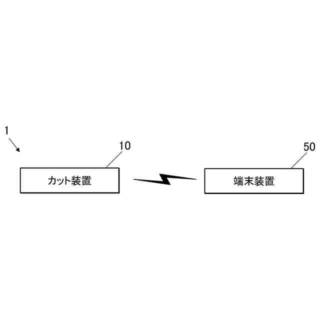 以下、本発明の実施の形態を、図面を参照して詳細に説明する。ただし、本発明の範囲は、図示例に限定されるものではない。図1に示すように、本実施の形態のカットシステム1は、カット装置10と、端末装置50と、を備えて構成される。