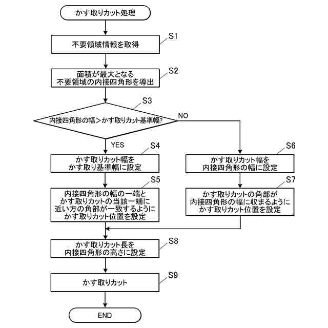 前記制御部は、前記不要領域の内接四角形の幅が前記切り込みの基準幅よりも大きい場合、前記切り込みの幅を前記切り込みの基準幅に設定し、前記不要領域の内接四角形の幅が前記切り込みの基準幅以下である場合、前記切り込みの幅を前記内接四角形の幅に設定する、