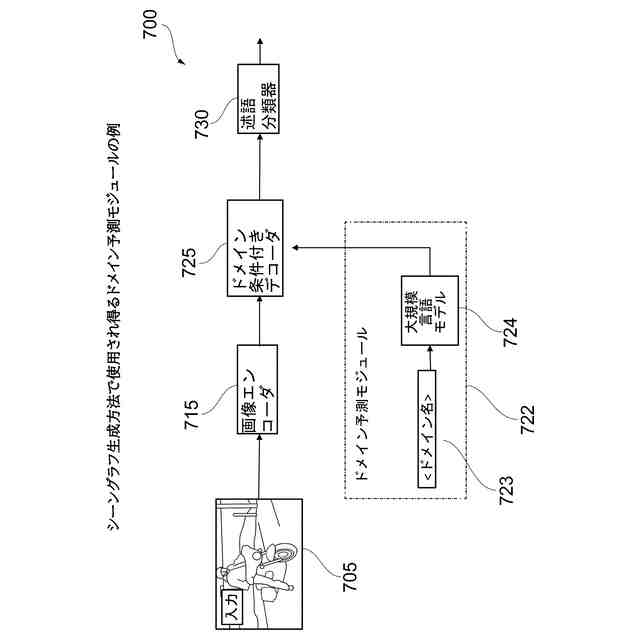 シーングラフ生成方法で使用され得るドメイン予測モジュールの例を示す。
