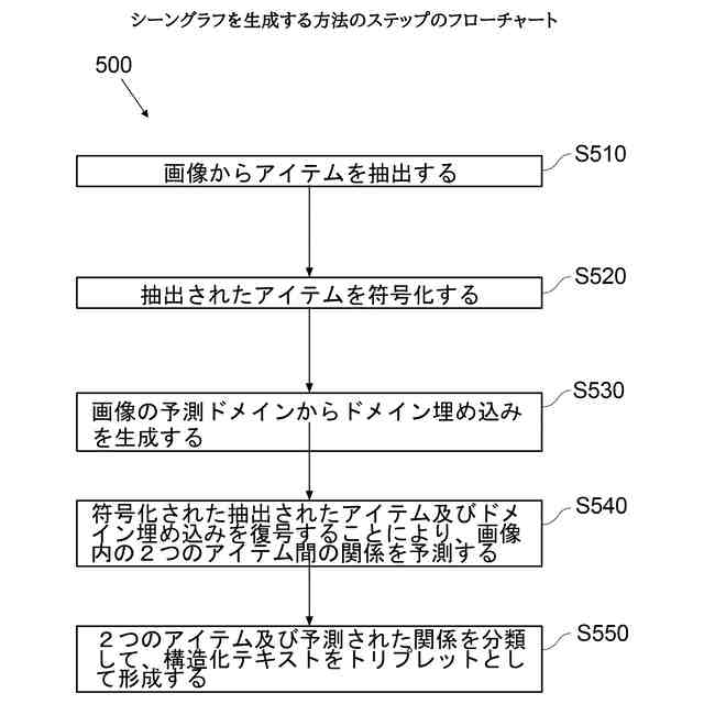 【解決手段】 当該方法は、前記画像からアイテムを抽出するステップと、抽出されたアイテムを符号化するステップと、前記画像の予測ドメインからドメイン埋め込みを生成するステップと、符号化された抽出された前記アイテムと前記ドメイン埋め込みを復号することにより前記画像内の2つのアイテム間の関係を予測するステップと、前記2つのアイテムと予測された前記関係を分類して前記構造化テキストをトリプレットとして形成するステップと、を含む。