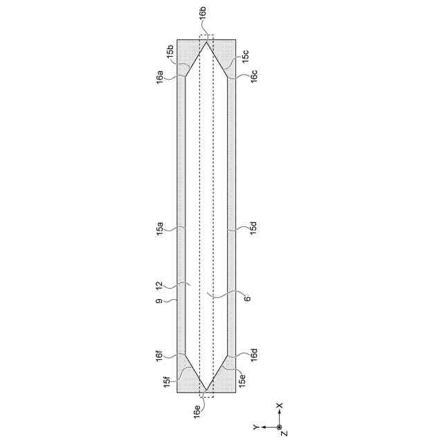 前記上辺の左端及び前記下辺の左端、もしくは前記上辺の右端及び前記下辺の右端の少なくとも一方は、直線の1つの辺により結ばれない。