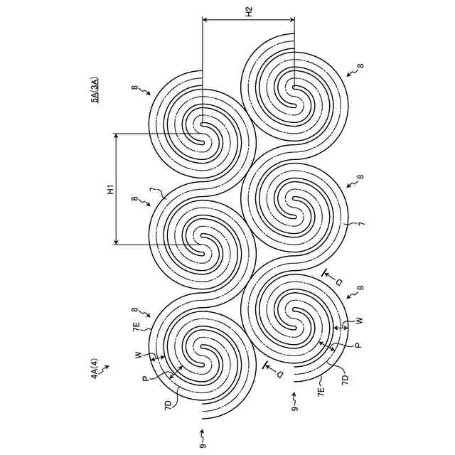図18は、実施形態に係る空気入りタイヤの変形例であり、要素パターンが略矩形の渦巻き状の形状で形成される形態を示す説明図である。