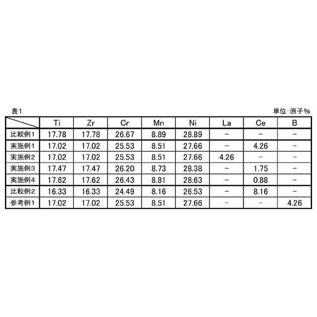 〈態様4〉Ti、Zr、Cr、Mn、及びNiを含有し、さらに、La及びCeからなる群より選ばれる一種以上の元素を含有する原材料を溶解して溶湯を得ること、及び