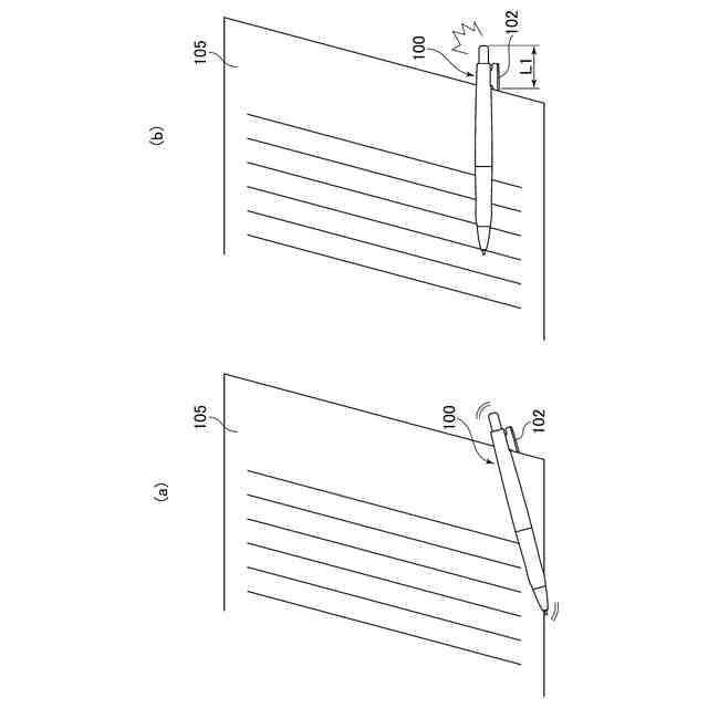 図1は、筆記具や、レーザーポインター、指示棒、等、長手方向に伸びる棒状の製品に従来のクリップが装着されている状態の一例を表す図である。図1(a)は棒状製品としての筆記具100に従来のクリップ102が、図1(b)は棒状製品としてのレーザーポインター101に従来のクリップ103が装着されている状態の一例を表す正面図である。