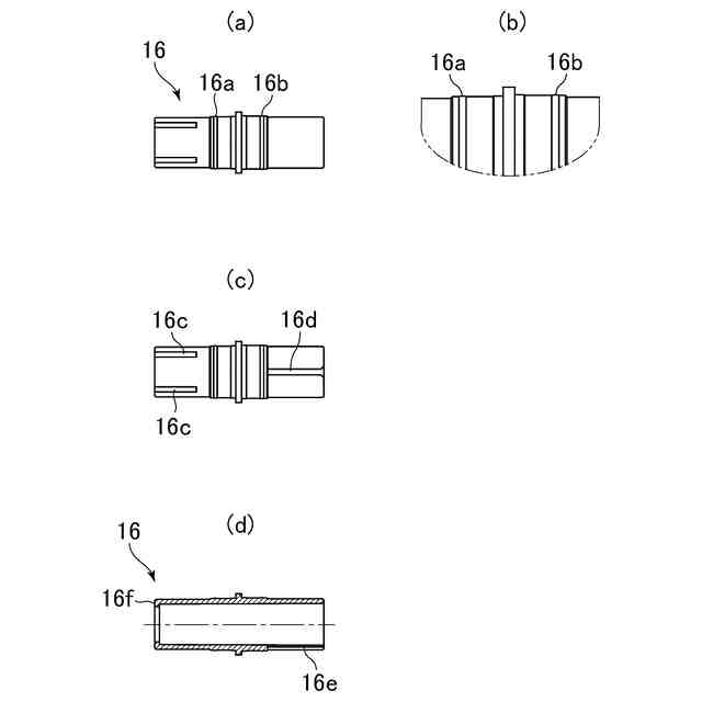 前記グリップ部周壁は、前記軸径方向で内側であるグリップ部内周壁面に、前記軸径方向で外側に向かって湾曲しているグリップ作動用凹部を備えていて、