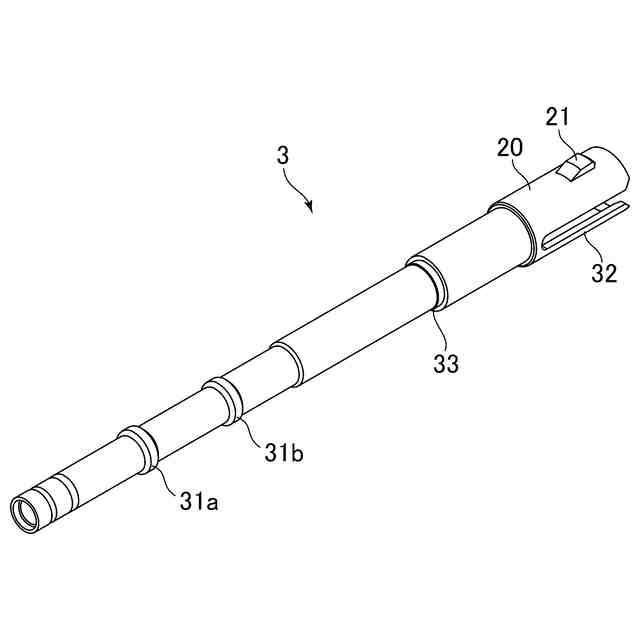 前記グリップ部は、前記軸方向に伸びる円筒状で、前記グリップ凸部は、複数個の前記グリップ出没用開口が前記把持部周壁に形成されている位置にそれぞれ対応する位置で前記グリップ部周壁外周表面に複数個形成されている