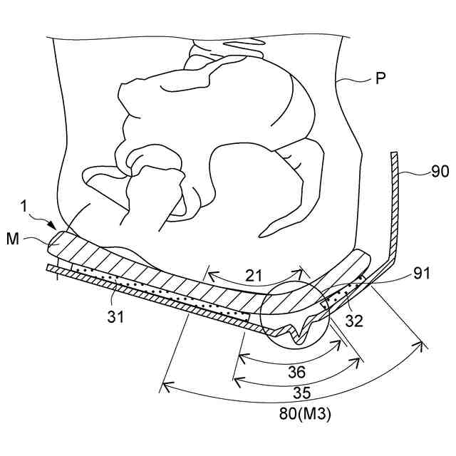着用者の歩行動作によって吸収性物品に加わる力について説明する吸収性物品の平面図である。