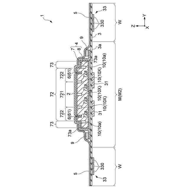 前記第1高剛性領域は、前記離間部において、前記前方粘着部及び前記後方粘着部と横方向において重ならない、又は、一部のみ重なる