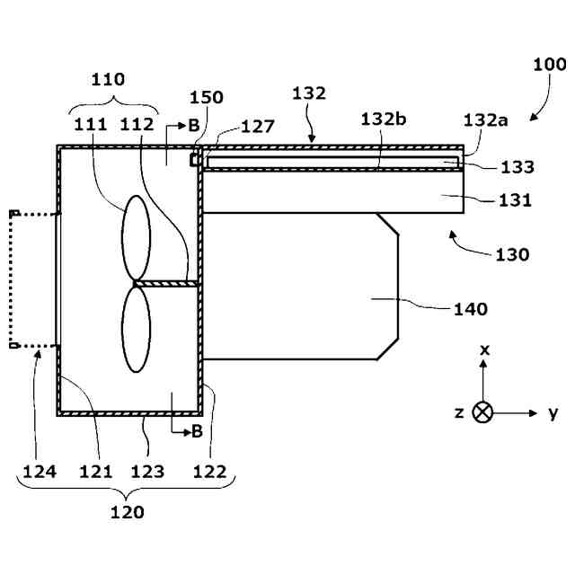 このインバータ冷却用空気は、車両用送風機のファンケースに形成された連通孔を介してファンケースに接続されるインバータ冷却用空気流路を流れる。インバータ冷却用空気は、たとえばインバータ冷却用空気流路に突出するフィンを冷却した後に、インバータ冷却用空気流路から流出する。