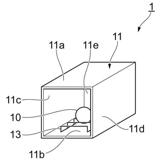急速冷凍装置1は、冷凍対象物10を急速に冷凍させる装置であり、立方体の6つの面(天井面11a、底面11b、2つの側面11c、11d、奥面11e、(図示しない)入り口ドア面11f)に冷却プレート11が配置されている。ただし、図1では、入り口ドア面11fの冷却プレートは図示されておらず、冷却プレート11が省略され、内部が見える状態が示されている。急速冷凍装置1に収納された冷凍対象物10は、底面11b上に直接接触したまま凍結すると、冷凍対象物10が底面11bから離れにくくなり、冷凍対象物10の取出しが困難になる。このため、冷凍対象物10を載置するための冷凍対象物載置台13が底面11bの上に設けられている。冷凍対象物載置台13は、冷凍対象物10との接触面積はできるだけ小さく、しかも底面11bからの冷熱輻射を実質的に遮らない形状であることが好ましい。例えば、冷凍対象物載置台13は、コの字状の金属製のワイヤが複数配置されることで、冷凍対象物10を載置可能な台として構成されている。