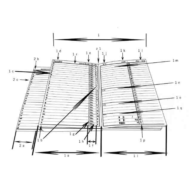 汎用的なトレーニング記録帳は、実施日単位にページで分割され、入力欄は空白であるというのが一般的である。