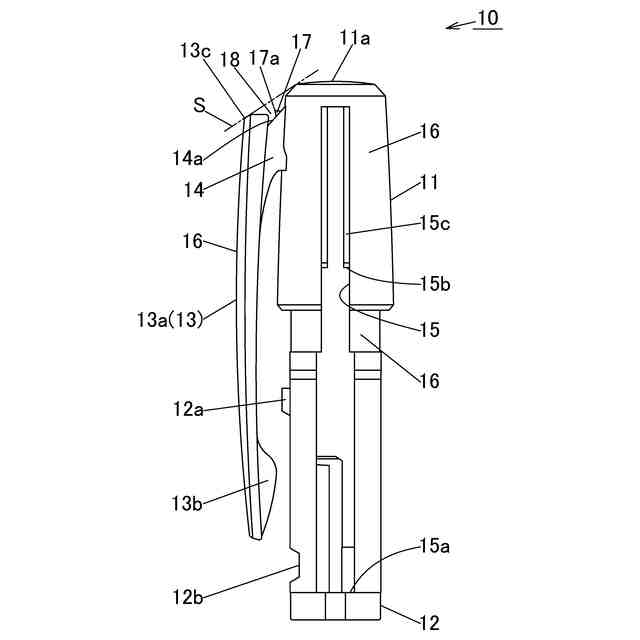 また、本願出願人は、特許文献2に、筆記具の外装本体にクリップとなる突部を設け、突部の外装本体と対向する面にゲート跡を形成することで、外観としての美観を損なうことなく、成形時のヒケや歪み等の問題がでない筆記具の部品を開示している。