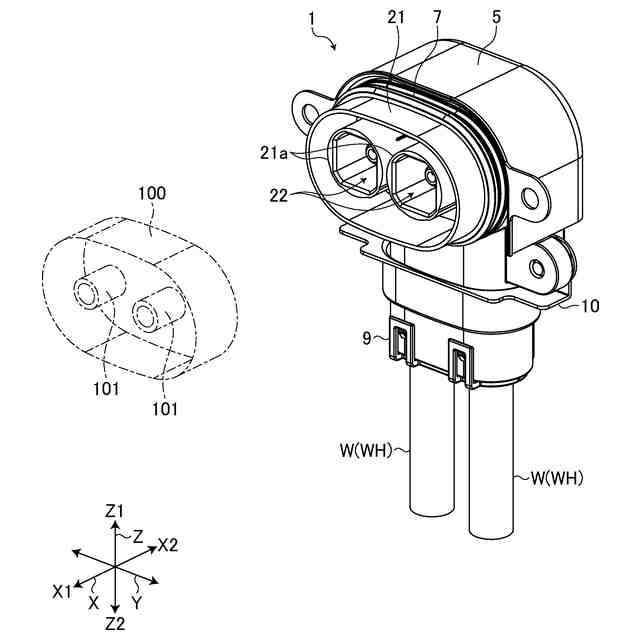 なお、以下の説明において、便宜上、図示のX方向、Y方向、及び、Z方向のうち、X方向を「軸線方向X」とし、Y方向を「幅方向Y」とし、Z方向を「高さ方向Z」とする。軸線方向Xと幅方向Yと高さ方向Zとは、相互に直交する。軸線方向Xは、例えば、相手側コネクタ100に対するコネクタ1の挿抜方向、端子状部材11の延在方向等に相当する。また、軸線方向Xの一方を相手側端子101への挿入方向X1とし、他方を相手側端子101からの抜去方向X2とする。高さ方向Zのうち、一方を第1方向Z1とし、他方を第2方向Z2とする。なお、以下の説明で用いる各方向は、特に断りのない限り、コネクタ1が相手側コネクタ100に嵌合された嵌合状態での方向として説明する。