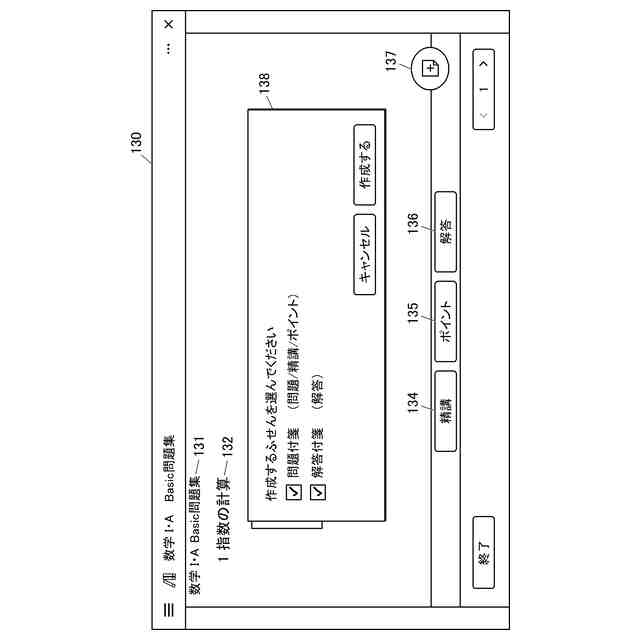 リスト表示される学習テーマ名のそれぞれにテスト問題と前記テスト問題に対応する正答とが対応付けられている電子書籍から選択された前記テスト問題を、前記電子書籍を閲覧可能であるユーザアカウントに対して送信する課題として生成する生成部として機能させ、