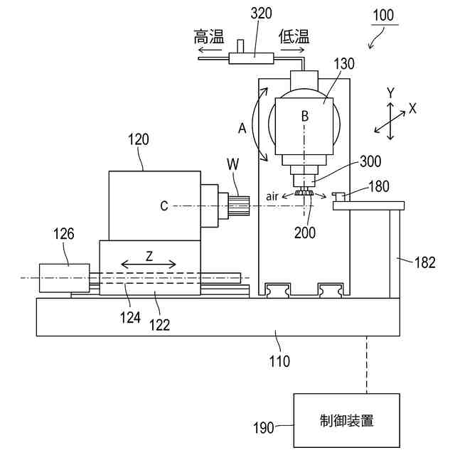 スカイビング加工は、通常の切削加工と同様に、潤滑や冷却のためにクーラント(冷却液)やブロア(空気)などの流体を供給しながら行われる。これらの中でも、ブロア(空気)を供給しながら行われる加工はドライ加工と称されている。例えば特許文献1には、「工作機械の主軸の工具装着部に装着されて加工を行う工具から前記主軸への伝熱を防止する工作機械の主軸工具装着部のエア冷却方法」が開示されている。