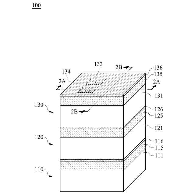上面及び前記上面に対向する下面を有する第1基板と、それぞれ前記第1基板の前記上面から前記下面まで貫通される4つの第1導電部材と、前記4つの第1導電部材のうちの一方の、前記上面に位置する端面に設けられ且つ電気的に接続される第1発光素子と、前記4つの第1導電部材のうちの他方の、前記上面に位置する端面に設けられ且つ電気的に接続される第1ダミープラグと、を含む第1構造層と、