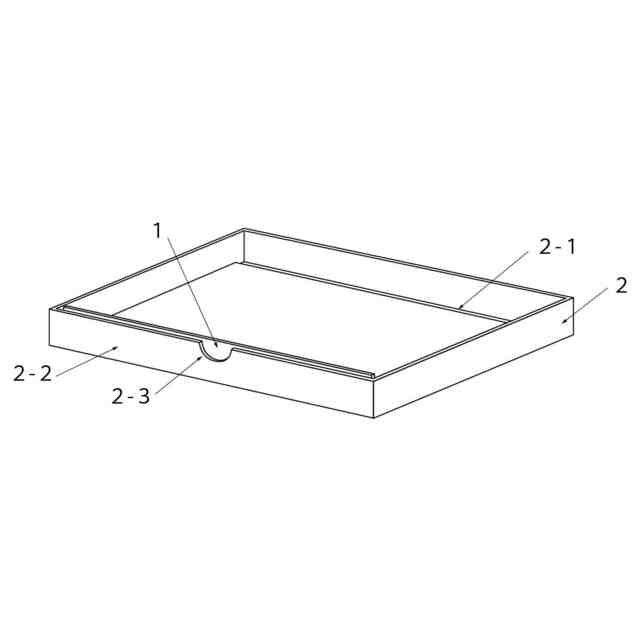 本発明は、書類等の外形より少し大きめの箱に、その書類等を平らに積み重ねた平置きで入れた場合でも、箱の底の方に位置する書類等を見たり、手で容易に傷めずに取り出せたりすることを目的とする。