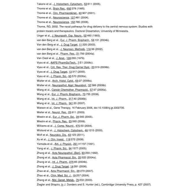 代謝的交差補正という現象は、いくつかのリソソーム蓄積症、特にMPS Iに対する、ERTの有効性の説明にもなる(Brady, 2006)。しかし、CNSに効果的に到達するには、その特定のリソソーム蓄積症(LSD)において欠けている酵素が血液脳関門(BBB)を透過する必要があることから、リソソーム蓄積症(LSD)の神経学的所見に対する酵素療法の有効性は観察されていない(Brady, 2006)。酵素は、ほとんどの場合、大きすぎ、また一般に荷電しすぎているので、BBBを効果的に横切ることができない。このことが、侵襲的髄腔内酵素投与の研究を喚起し(Dickson et al., 2007)、侵襲的髄腔内酵素投与については、MPS Iのイヌモデルにおいて有効性が実証され(Kakkis et al., 2004)、MPS Iに関するヒト臨床治験が始まっている(Pastores, 2008、Munoz-Rojas et al., 2008)。酵素療法の主な欠点として、その費用が多大であること(年間200,000ドル超)と、組換えタンパク質の反復注入が必要であることが挙げられる。髄腔内IDUA投与の現在の臨床治験は、3ヶ月に1回しか酵素を注射しない計画になっているので、この投与レジメンの有効性は不確かなままである。