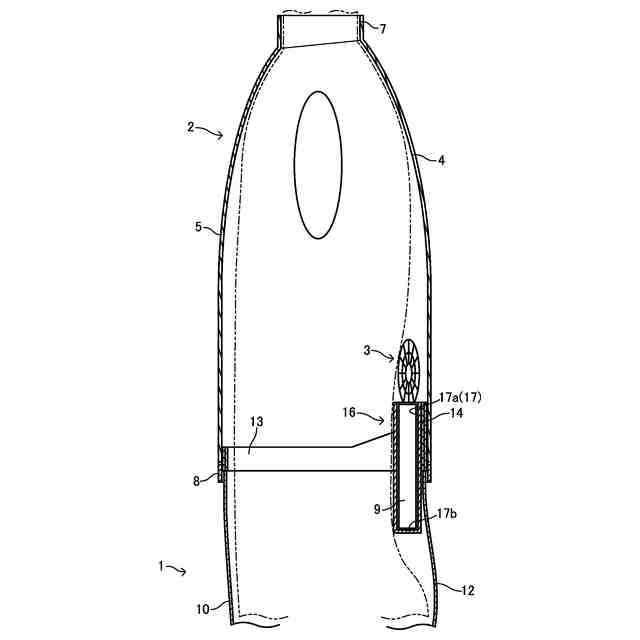 前記目的を達成するために、本開示に係るズボンの構成1は、外気を取り込む送風装置が取り付けられた送風装置付き上衣内に差し込まれ、該上衣内空間に連通する空気流通路を確保するスペーサを保持する収容部が内面側に設けられていることを特徴とする。