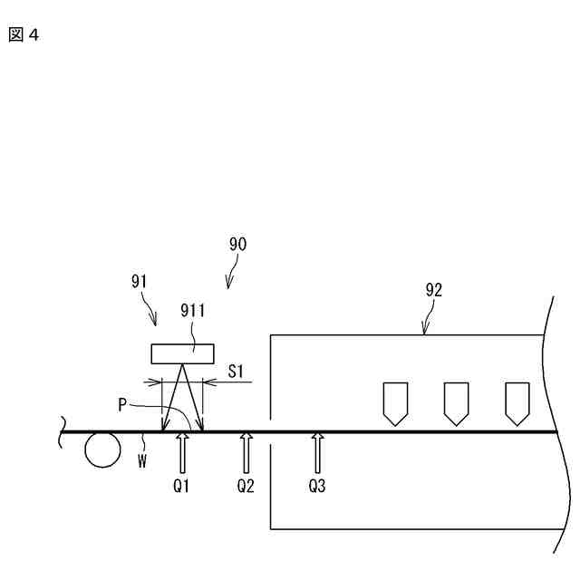 測定位置Q3は、第二乾燥部92の上流側位置である。第二乾燥部92では熱風が与えられて高温となっている。測定位置Q3で、一旦温度が低下した塗膜Pの温度が上昇する。