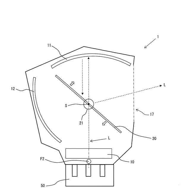 しかしながら、例えば特許文献1に示すようなフロントウインドウ(=ウィンドウシールド)を用いずに表示像を視認させたい場合には、インストルメントパネル内で光学系を完結させる必要があり、実像や虚像といった表示像を表示する場合に光路長を稼ぐ必要が生じる。そのため、装置全体の大型化を招き、インストルメントパネル内への搭載性が悪くなってしまうという問題があった。