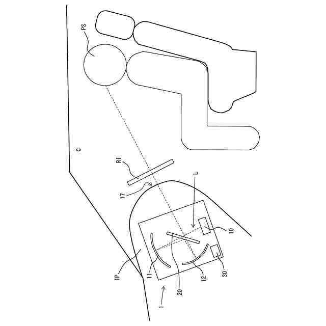 図1は、視認者PSが、実像RIをインパネIPの手前(視認者PSとインパネIPとの間)に浮いているように視認している様子を示している。具体的な表示距離は、目の位置から例えば500mmから800mm程度の距離である。実像RIとして例えば、システム起動時又は視認者PSのジェスチャーを検知した時に、操作画面等を表示する。図2は、視認者PSが、虚像VIをインパネIPの奥にめり込んでいるように視認している様子を示している。具体的な表示距離は、目の位置から例えば2m~3m程度の距離である。虚像VIとして例えば、実像RIで視認者PSが選択した映画やゲームなどのエンタメコンテンツを表示する。その後、コンテンツが終了した時や、視認者PSのジェスチャーを検知した時に実像RIに切り替える。