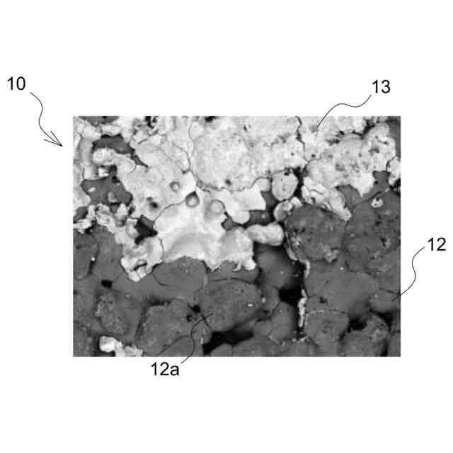 前記本体部の第一の外表面の少なくとも一部を覆う、主たる成分がセラミックスである複数の粒体が焼結されてなる焼結体と、