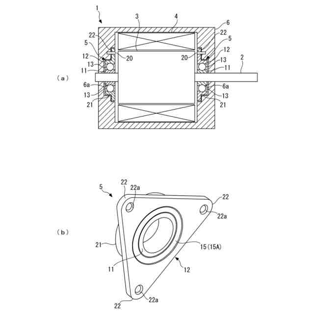 上記特許文献1の抜止め金具やウチコフタを用いたモータでは、ベアリングが嵌合孔に嵌合されるとともに、ベアリングの外輪の両側面が、エンドブラケットの壁部と、抜止め金具やウチコフタとによって挟持されることにより、ベアリングがエンドブラケットの嵌合孔に強固に取り付けられている。