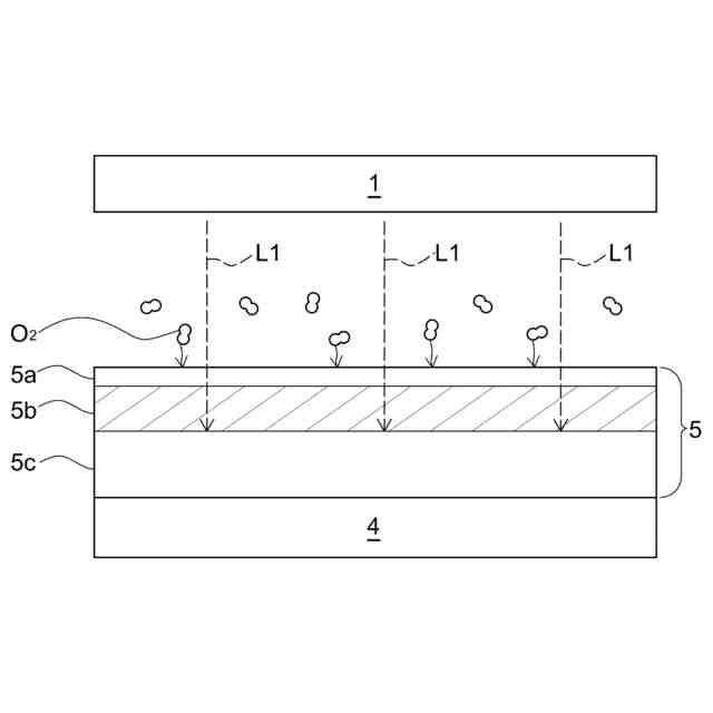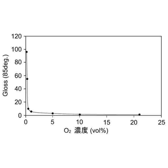 詳細は「発明を実施するための形態」の項で説明するが、プレキュア工程について簡単に説明する。プレキュア工程は、マット化工程及びマット化工程に続くキュア工程に先立って行う工程である。プレキュア工程では、硬化性樹脂の表面に、酸素濃度が0.3vol%以上21.0%以下の雰囲気下で、光源の発光スペクトルにおける主波長が200nm以上の第一光を照射する。そうすると、前記硬化性樹脂の前記表層の内部では硬化が進む一方で、前記硬化性樹脂の表層中の最表面である極表面では硬化収縮があまり進まず、硬化性樹脂の表面にシワが形成されない。硬化性樹脂の表層の内部だけを選択的に硬化することにより、後のマット化工程におけるシワ形成時の硬化深さを制限できるようになる。本明細書では、プレキュア工程における硬化処理を「予備硬化」ということがある。予備硬化の制御パラメータとして、第一光の照射量、照度、照射時間及び酸素濃度等がある。これらの制御パラメータを制御することにより、表層内部における硬化深さを制御できる。つまり、第一光の照度や照射時間等の、予備硬化の制御パラメータを制御することにより、予備硬化における硬化深さを制御し、その結果、マット化工程におけるシワ形成時の硬化深さを調節できる。シワ形成時の硬化深さは、シワの粗密の程度、すなわち、マット化処理における粗面化の程度と関係する。それゆえ、予備硬化の制御パラメータを制御することで、マット化処理における粗面化の程度を高精度に制御できる。