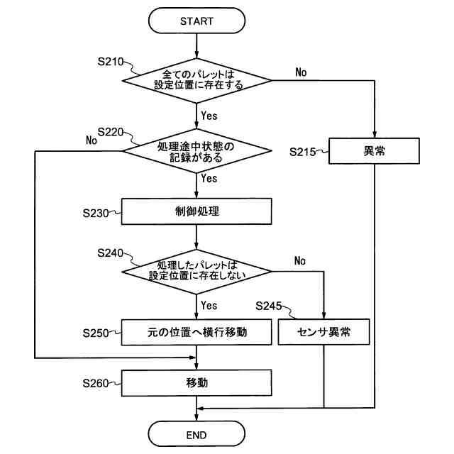前記複数のパレットを隣接する前記駐車領域内の設定位置まで横行移動するように制御するときに、横行移動を完了するまでの処理途中状態を記録し、