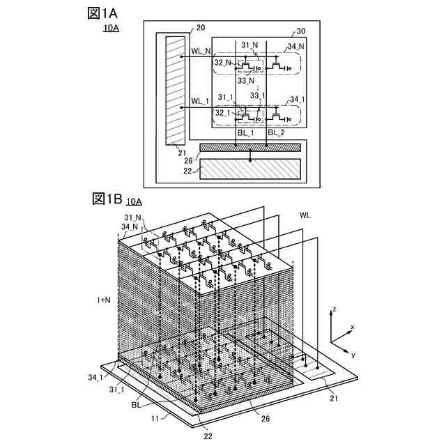 有する層を、複数積層した構成について開示している。DRAMのメモリセルを有する層