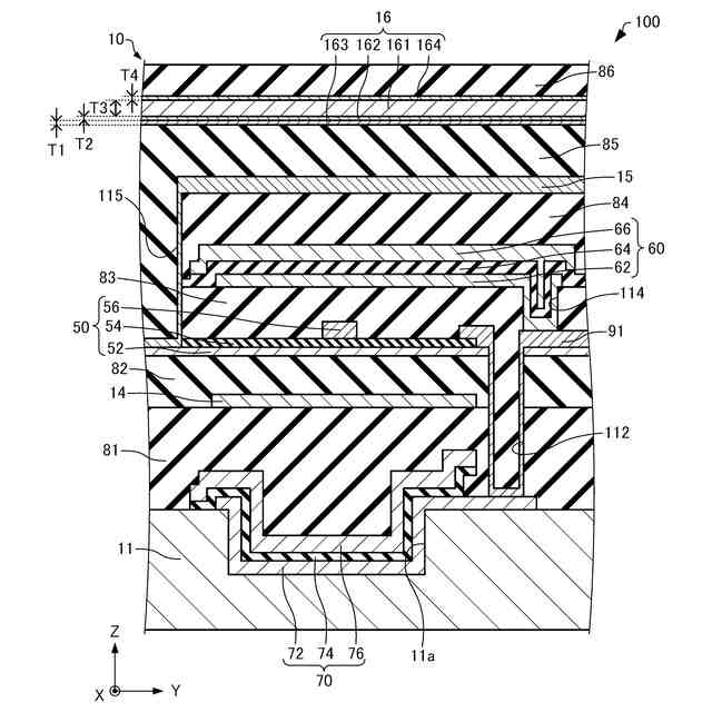 前記第3層は、前記第1層および前記第2層よりも前記トランジスター側に設けられ、前記第1層よりも小さい光反射率を有し、かつ、前記第2層と材質が異なる。