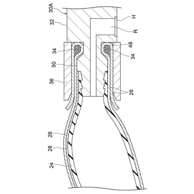 【解決手段】流体の圧力に応じて膨張及び収縮する筒状のチューブ24と、チューブ24の外周面を覆うスリーブ26と、チューブ端部を封止する一対の封止部材と、チューブ24の径方向の外側、且つ、スリーブ26の径方向の内側において、軸方向Sにおける一方側から他方側に延出配置され、軸方向Sの圧縮に対して抵抗し、軸方向Sと交差する交差方向に湾曲可能である長尺の拘束部材28と、拘束部材28の一端部である拘束端部29に対応する位置においてスリーブ26の外側からスリーブ26及び拘束部材28を挿入部32Bへ固定する固定部材36と、を備え、拘束端部29は挿入部32Bにおいて、湾曲前のチューブ24の挿入部32Bに挿入されていない部分に対応する外面よりも径方向外側でチューブ24の外面に固定される。