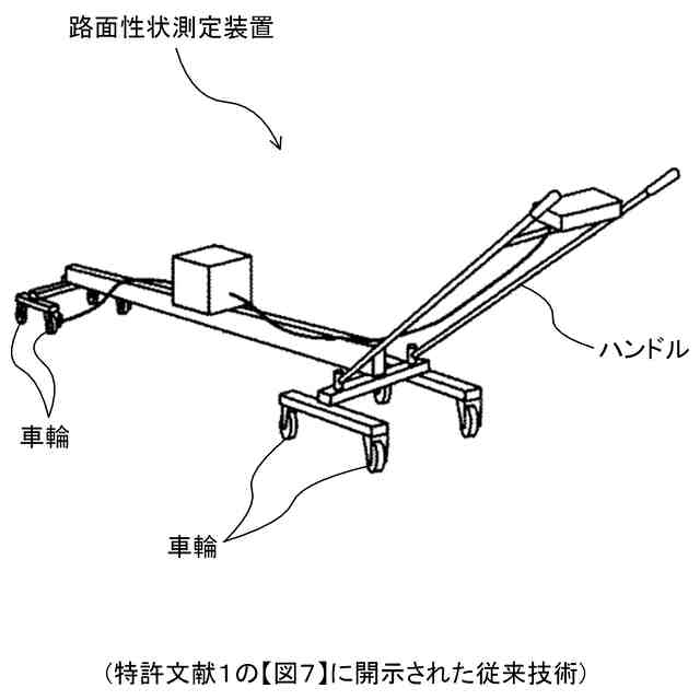 従来から、特許文献1の図7に記載されているような路面性状測定装置など、路面を走行させる際に、ハンドルを把持して牽引する機械・器具や装置等がある。これらの従来技術では、逸走防止の措置として、車輪に歯止めを設置したり、車輪にブレーキ機構を適用するなどの対策が講じられていた。