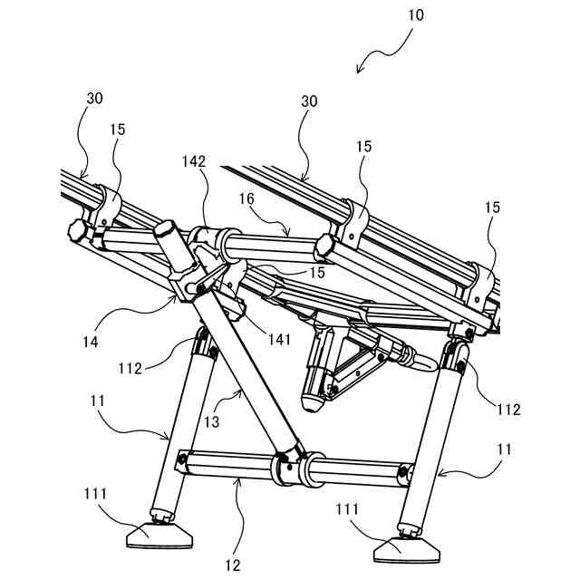 (2)に係る発明は、平行な二つの前記可倒脚部を連結する可倒脚部連結部材と、前記可倒脚部連結部材に挿通される棒状の可倒脚部支持部材と、前記可倒脚部支持部材が挿通されるとともに該可倒脚部支持部材を任意の挿通位置で固定又は固定を解除することで前記可倒脚部を倒立状態又は非倒立状態にすることが可能な倒立開閉部材と、を有することを特徴とする上記(1)に記載の逸走防止装置である。