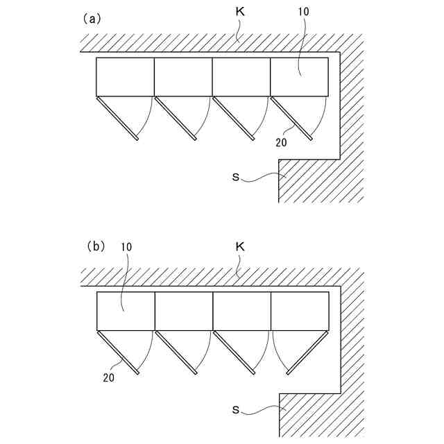 斯かる置き配によく利用される宅配ボックスについては、玄関先やエントランスに備えられる場合が多く、建物の造り上、壁や設置物の配置状況により、扉の開閉を右開きとするか左開きとするか製造の段階で決定しなければならず、例えば収容領域を上下左右に複数配置する宅配ボックスなどでは、製造時にそれぞれの扉の左右の開閉方向を決めなければならず、また製造した後に左右の開閉方向を変更したくなった場合に対応できないという問題がある。この問題は、キャビネット、ロッカー、ポストなども同様である。