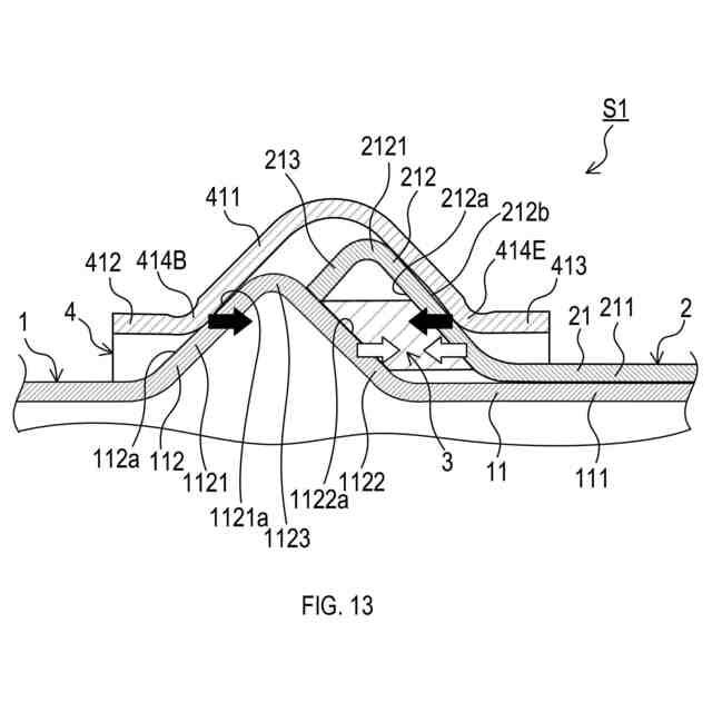 前記少なくとも1つの膨出側突出部は、前記膨出側対向面の内周縁よりも内周側まで突出し、