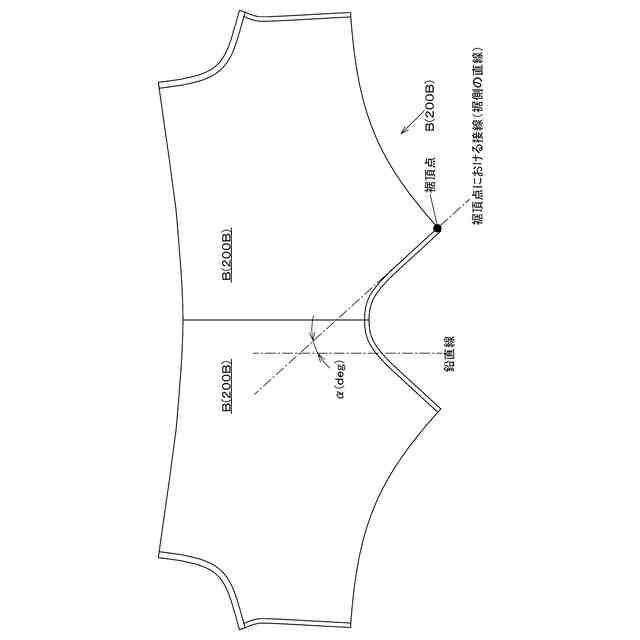 【解決手段】ボクサーパンツ200は、型紙に従って裁断した平面状の、太腿の周囲を覆う裾周りおよびウエストラインを形成する身頃編地200Bと、会陰部を覆うシック部を形成するシック編地を含む2以上の伸縮性編地に対して編地縁を接合した下半身用衣類であって、接合を開放して、2以上の伸縮性編地の中で太腿の周囲を覆う裾周りおよびウエストラインを形成する1枚の伸縮性編地である身頃編地200Bをウエストラインが略水平になるように平面上に載置した場合における、シック編地と接合する裾側の直線(裾頂点における接線)が鉛直線と交差する角度αが35度以上55度以下である。