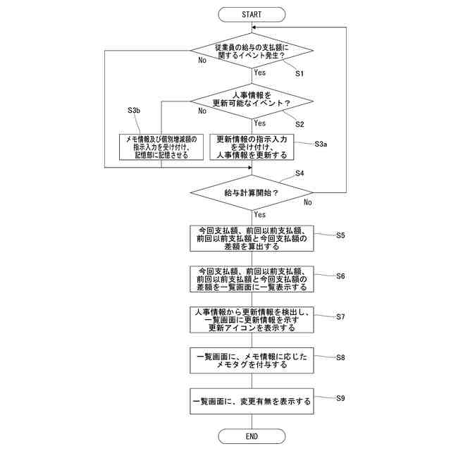 メモ入力部により、給与又は報酬の少なくとも一方の支払額に関する支払対象者に生じたイベントを記録するためのメモ情報の指示入力をユーザから受け付け、指示入力された前記メモ情報を前記支払対象者に対応付けて記憶部に記憶させ、