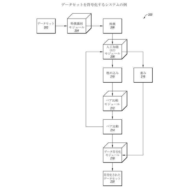 【解決手段】動作は、データセットに対応する特徴を特定することを含み得る。各特徴の埋め込みは、予め訓練された生成人工知能モデルを用いて取得され得る。埋め込みのペア比較が生成され得る。予め訓練された生成人工知能モデル生成人工知能モデルを用いて計算された重みをペア比較に適用することによって、符号化されたデータセットが生成され得る。重みは、ペア比較における特徴間の相関を示し得る。