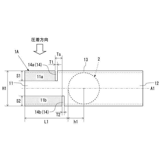 前記一対のスリットの一方の前記圧着方向における深さをS1とし、