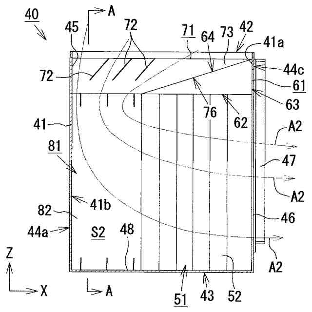 前記段ボールフィルタは、前記フィルタエレメントが相対的に密に設置されている第1室と、前記フィルタエレメントが相対的に疎に設置されているかあるいは前記フィルタエレメントが設置されていない第2室とを有し、