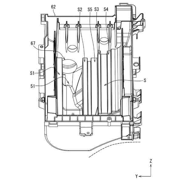 前記第1吸込部と前記第2吸込部が並ぶ方向から見たときに上下方向に対して傾斜している、請求項3に記載の洗濯機。
