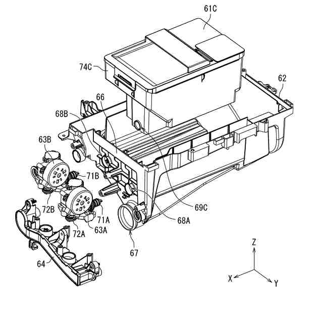 2つの液剤タンクを収容した液剤供給ユニットの分解図