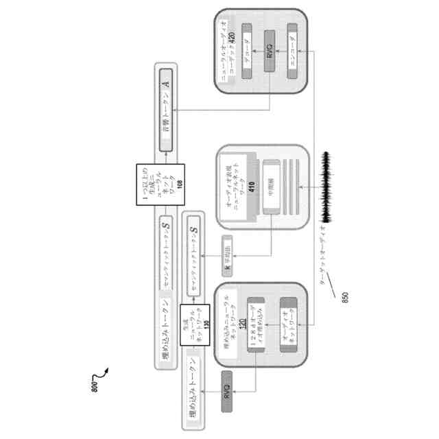 第1の態様によれば、オーディオ信号の予測を生成するための方法が提供され、方法は、時間ウィンドウにまたがる複数の出力時間ステップの各々においてそれぞれのオーディオサンプルを有するオーディオ信号を生成するための要求を受信することと、時間ウィンドウにまたがる複数の第1の時間ステップの各々においてそれぞれのセマンティックトークンを指定するオーディオ信号のセマンティック表現を取得することであって、各セマンティックトークンが、セマンティックトークンの語彙(a vocabulary of semantic tokens)から選択され、対応する第1の時間ステップにおけるオーディオ信号のセマンティックコンテンツを表す、取得することと、1つまたは複数の生成ニューラルネットワークを使用し、少なくともセマンティック表現を条件として、オーディオ信号の音響表現を生成することであって、音響表現が、時間ウィンドウにまたがる複数の第2の時間ステップの各々において1つまたは複数のそれぞれの音響トークンのセットを指定し、それぞれの第2の時間ステップにおける1つまたは複数のそれぞれの音響トークンが、対応する第2の時間ステップにおけるオーディオ信号の音響特性を表す、生成することと、デコーダニューラルネットワークを使用して少なくとも音響表現を処理してオーディオ信号の予測を生成することとを含む。
