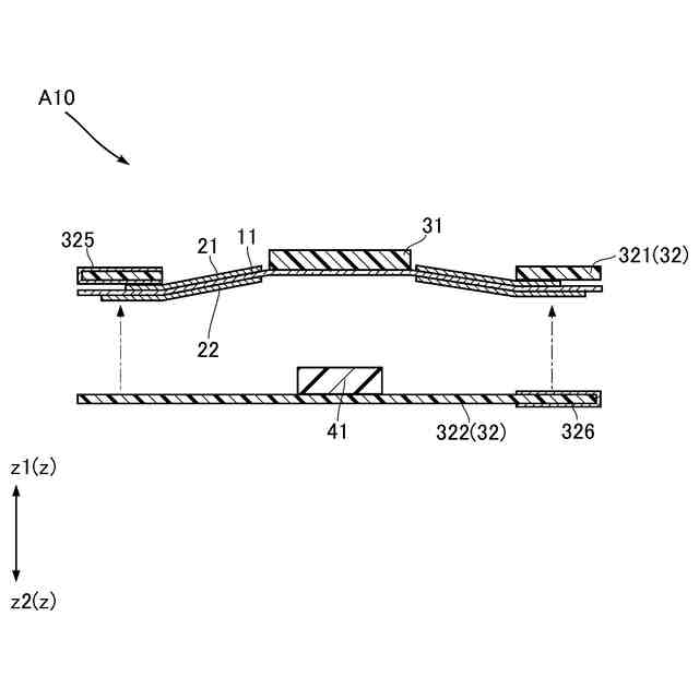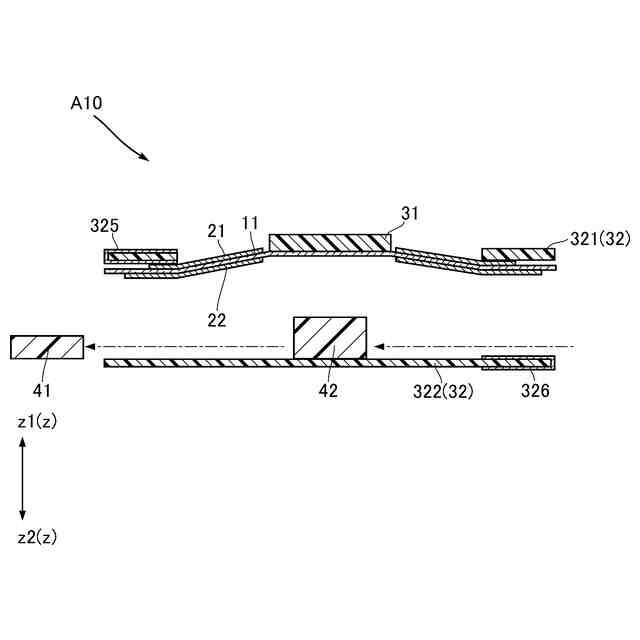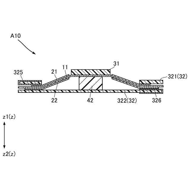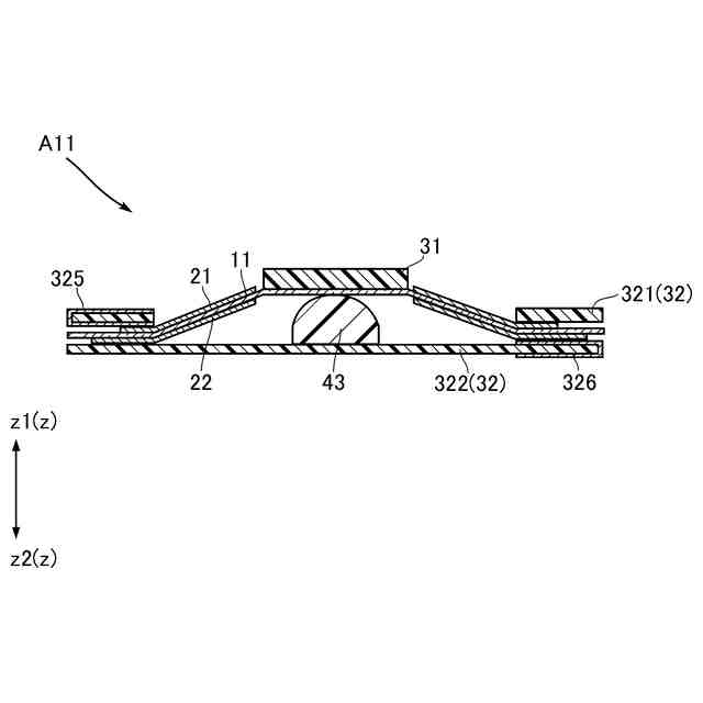 本発明の好ましい実施の形態においては、前記第2電極層は、前記第1方向において前記第1電極層に対して前記第2支持体の側に配置されており、前記第1方向に視て、前記第2電極層は、前記第1電極層の外縁から延出している。