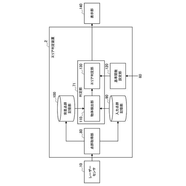 物体領域の代表位置が存在するエリアを判定するための基準となる基準関数と、前記センサデータとに基づいて、前記代表位置が第1のエリアに存在するか第2のエリアに存在するかを判定する判定部と、
