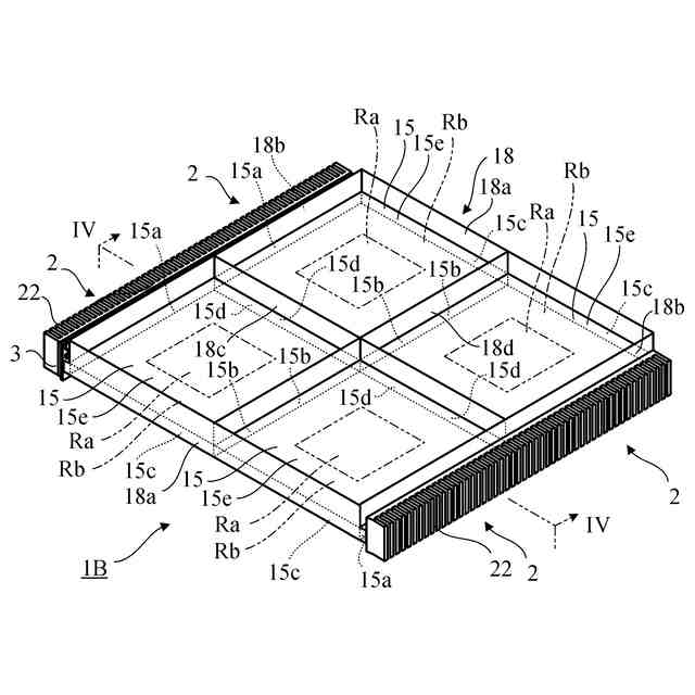 紫外線照射ユニットの2つの紫外線光源とヒートシンクの斜視図である。