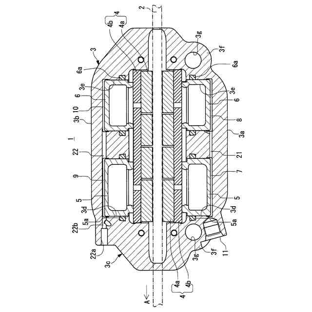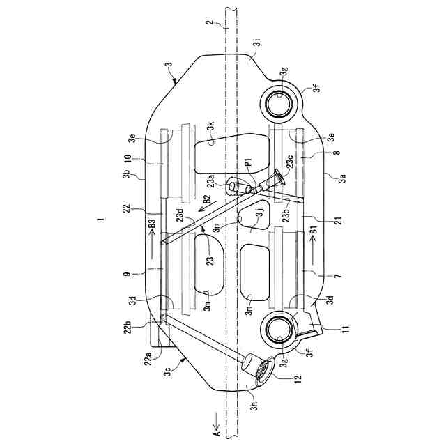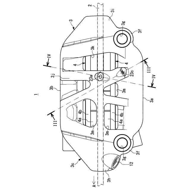 【解決手段】一対の作用部3a,3bに、ディスク回出側シリンダ孔3dとディスク回入側シリンダ孔3eをそれぞれ形成し、ディスク周方向に隣り合うディスク回出側シリンダ孔3dとディスク回入側シリンダ孔3eとを液通路21,22でそれぞれ連通する。さらに、一方の作用部3aのディスク回入側シリンダ孔と3eと、他方の作用部3bのディスク回出側シリンダ孔3dとを連通する作用部間液通路23を設ける。